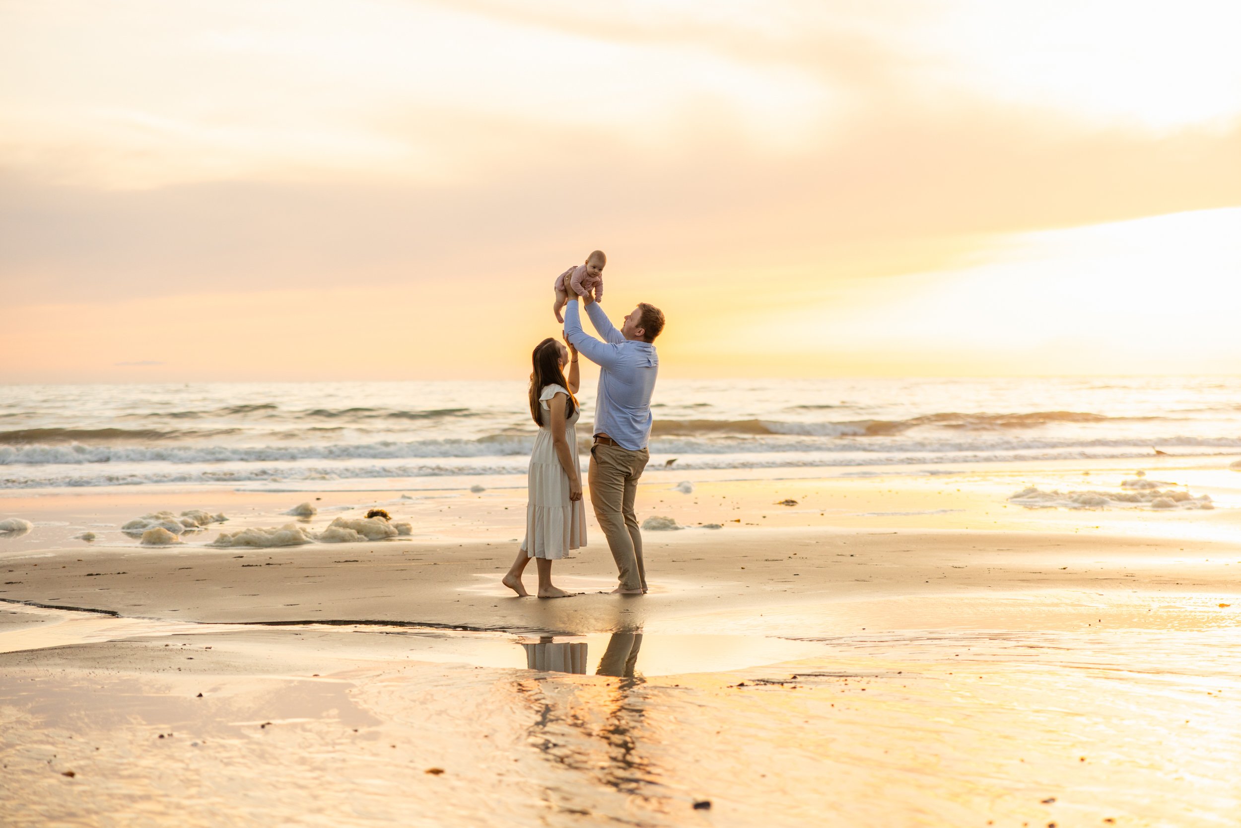 So that’s what I loved about this session. We got an epic little sunset during low tide, so it felt especially heavenly and wondrous - a perfect reflection of that feeling these new parents have for their little star.